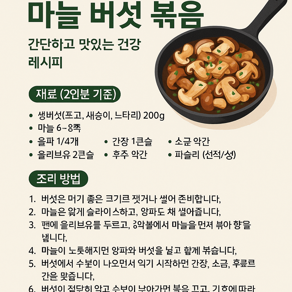 마늘 버섯 볶음 만드는 법 – 면역력을 위한 실천 가능한 건강 레시피