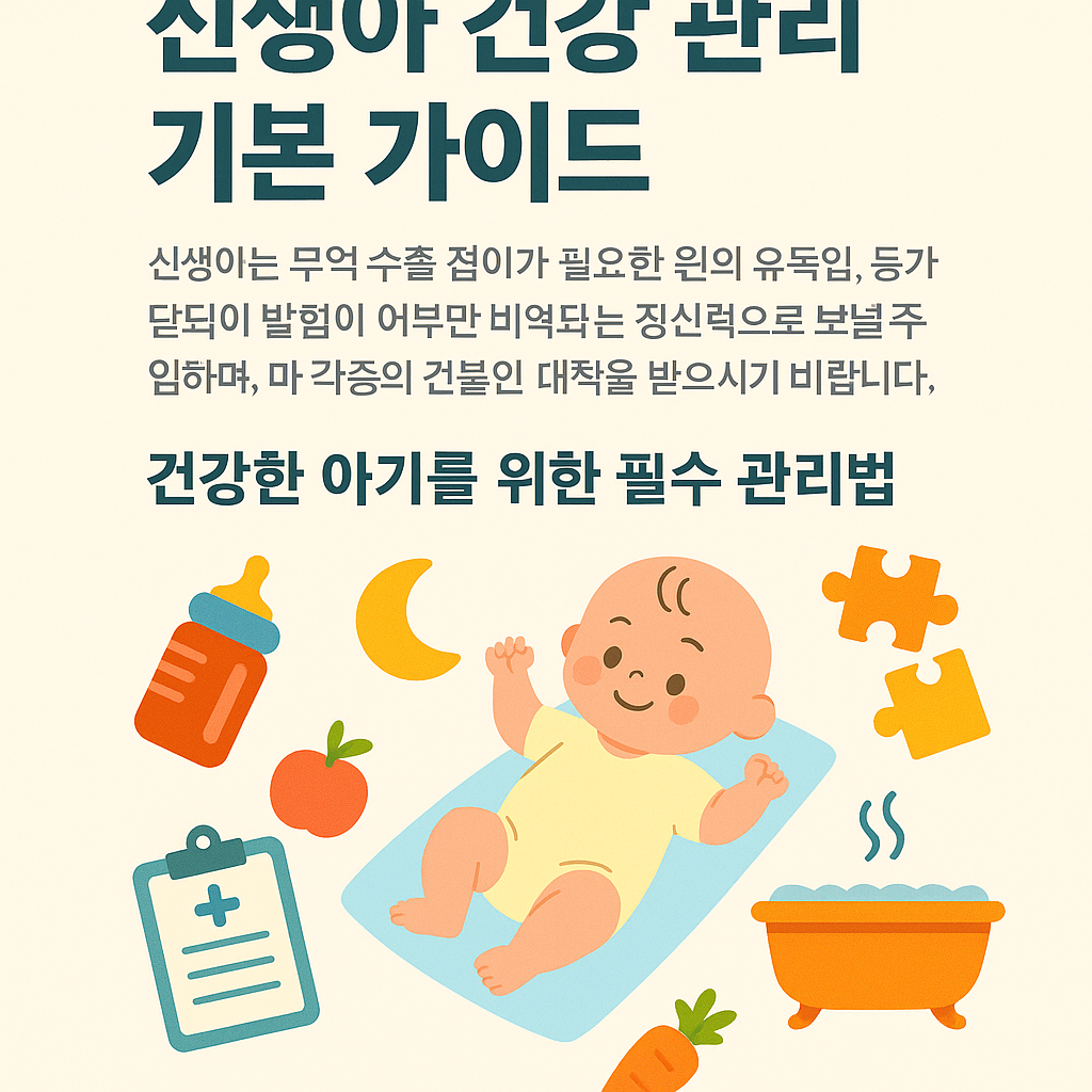 신생아는 인생에서 가장 섬세하고 민감한 시기를 보내는 존재입니다. 출산 직후부터 생후 1개월까지는 외부 환경에 적응해 나가는 중요한 시기로, 이 시기의 건강 관리는 아이의 평생 면역력과 성장 발달에 결정적인 영향을 미칩니다. 하지만 대부분의 초보 부모는 아기의 울음, 수면 패턴, 분유 수유량, 체온 변화, 기저귀 교환 등 모든 것이 낯설고 어렵게 느껴질 수 있습니다. 작은 변화에도 당황하고, 무엇이 정상이고 어떤 경우 병원을 찾아야 하는지 몰라 불안해하는 경우가 많습니다. 신생아는 스스로 몸을 보호할 수 없고, 감염에 매우 취약합니다. 이 시기에 가장 중요한 것은 청결한 환경을 유지하고, 적절한 체온을 유지하며, 영양을 안정적으로 공급하는 것입니다. 또 아기의 행동을 관찰해 이상 신호를 빠르게 파악하고, 필요 시 전문가의 도움을 받을 수 있는 민감성과 준비도 필요합니다. 이 글은 처음 육아를 시작하는 부모들을 위해, 신생아의 건강을 안전하게 지키기 위한 기본적인 관리 방법을 체계적으로 소개합니다. 올바른 수유법과 수면 환경 조성, 피부와 배꼽 위생, 예방접종, 황달·변비·설사 같은 흔한 증상에 대한 대처법까지 실제 가정에서 당장 실천할 수 있는 실용적인 가이드를 담고 있습니다. 혼란스럽고 긴장의 연속일 수 있는 초보 육아 시기지만, 기본을 이해하고 실천하는 것만으로도 아기의 건강은 충분히 잘 지켜낼 수 있습니다. 이 글을 통해 ‘건강한 첫 30일’을 안정적으로 설계할 수 있도록 도와드리겠습니다.