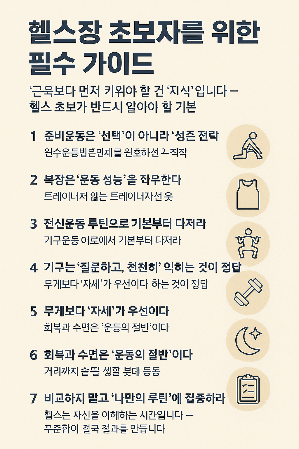 헬스장 초보자가 반드시 알아야 할 7가지 운동 원칙과 실천 전략